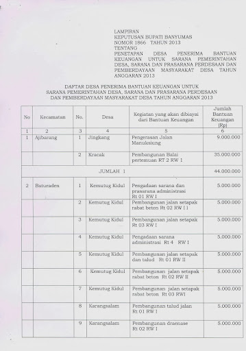 Daftar Desa Penerima Bantuan Keuangan Tahun 2013 (SK Bupati Nomor 1866 Tahun 2013)